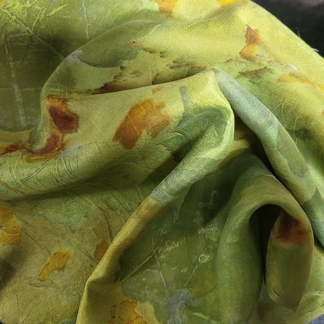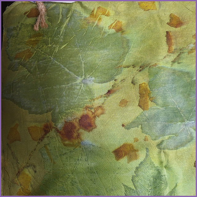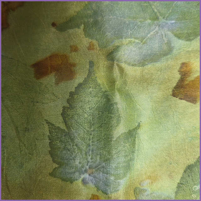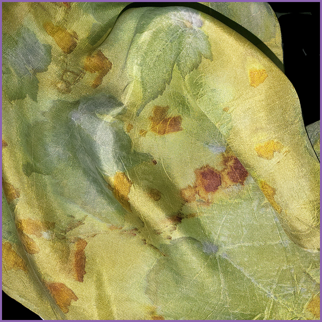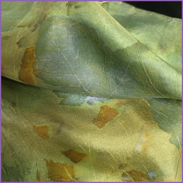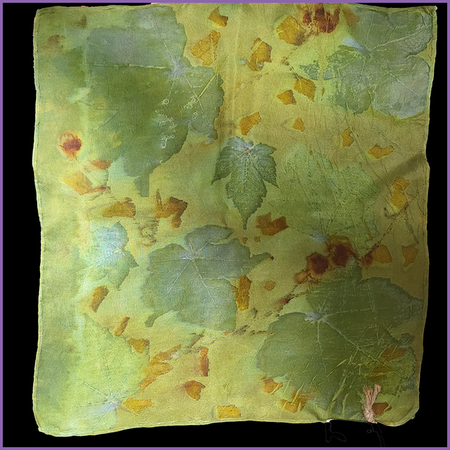 100% Silk Pocket Square - dyed with weld and indigo, eco-printed with sycamore, onion skin and coreopsis
