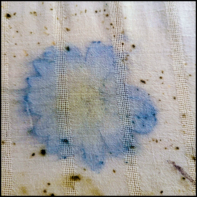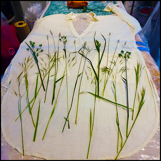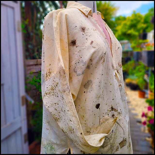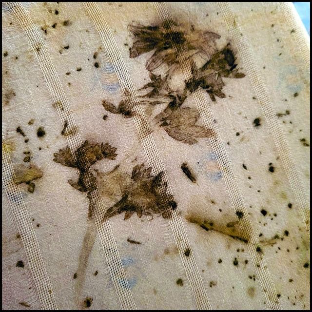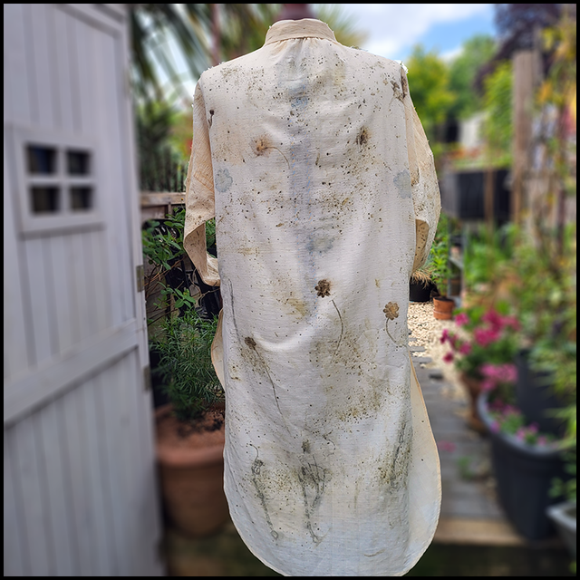 This cotton shirt was originally produced by Urban Outfitters. It is lightweight an perfect for those hot summer days. Printed with osteospurmum, bidens, coreopsis, wild grasses, and a scattering of dried weld, this item was wrapped in an iron blanket during processing. Once out of the pot, we were surprised to see that the orange osteospurmum had left a blue print, proof that we see is not always what lies beneath the surface.