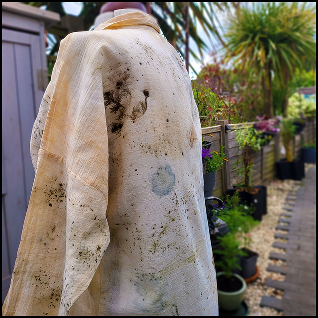 Cotton Overshirt size XL - upcycled and printed with Osteopurmum, Bidens and Wild Grasses - wrapped in an iron blanket
