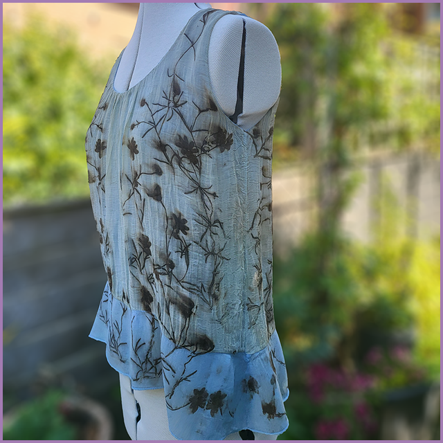 Silk Vest - Size Medium - Indigo dyed and eco printed with coreopsis